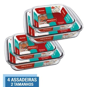 4 Assadeiras 2 de cada Tamanho 1,1 Litros e 1,8 Litros Quadrada Marinex Nadir Figueiredo