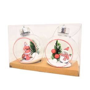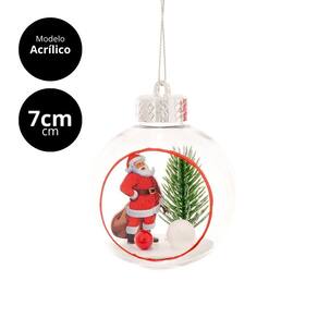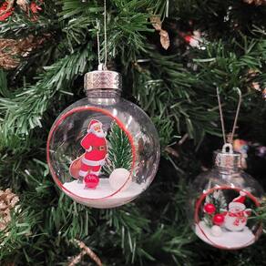 -04 Unidades Bola de Natal em Acrílico Decoradas Papai Noel e Boneco de Neve, 7cm com Cordão para Pendurar
