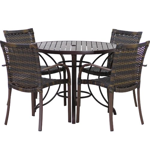 Jogo 4 Cadeiras Ascoli e Mesa Tampo Ripado de 1,00m Alumínio para Varanda, Piscina, Jardim - Marrom Cacau