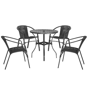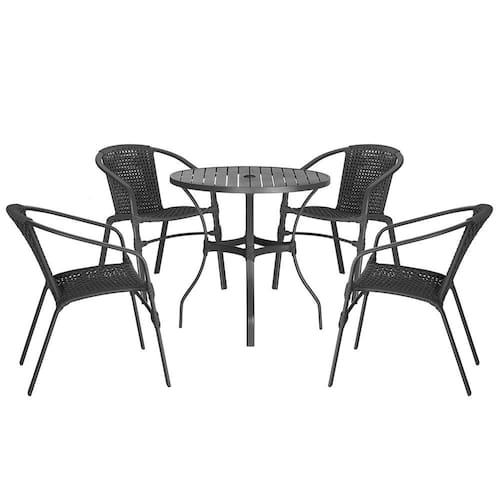 Jogo 4 Cadeiras Corda Nautica Floripa e Mesa Tampo Ripado Aluminio Roma 1,00 m Varanda Jardim Area Piscina Trama - Preto