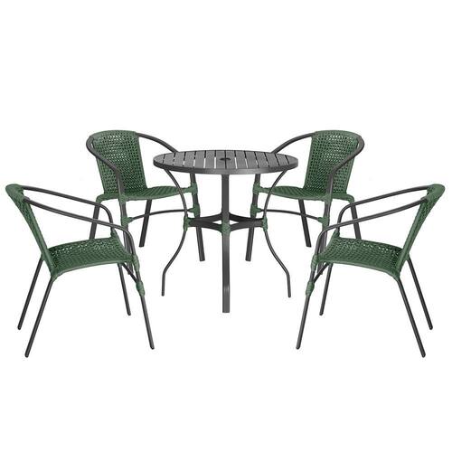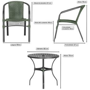 Jogo 4 Cadeiras Corda Nautica Floripa e Mesa Tampo Ripado Aluminio Roma 1,00 m Varanda Jardim Area Piscina Trama - Verde Musgo