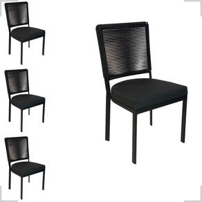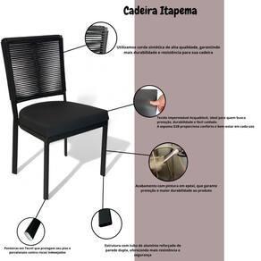 Ela é produzida em alumínio tubo oblongo com reforços interno, pintada com pintura eletro estática (epóxi) de alta qualidade e revestida com corda sintética (Coex) com proteção UV, no assento é uma madeira de mdf de 15 mm, com espuma densidade D28 e revestido de tecido acquablock (Karsten) impermeável, nos pés são utilizado sapatinha de tecnil nylon que não danifica seu porcelanato e tem uma resistência maior a piso ásperos.