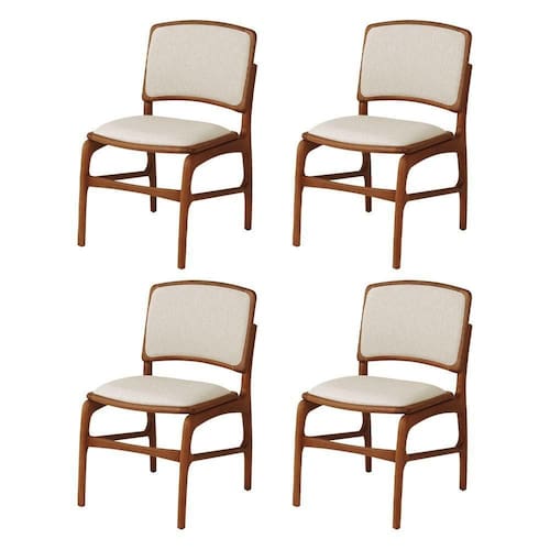 AS IMAGENS SÃO MERAMENTE ILUSTRATIVAS E PODEM SOFRER VARIAÇÕES DE COR E PEQUENOS DETALHES DE ACORDO COM O SEU MONITOR, ILUMINAÇÃO DO AMBIENTE E ATÉ MESMO A SUA PERCEPÇÃO VISUAL.Jogo 4 Cadeiras de Jantar FlorenÃa em Madeira Jequitibà Terra Encosto em Tecido Premium Linho Bege