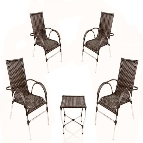 Jogo 4 Cadeiras E Mesa Para área E Jardim ATENCAO: consulte o custo de envio. ITENS INCLS: 04 Cadeiras Venus em aluminio 01 Mesa de centro Venus em aluminio