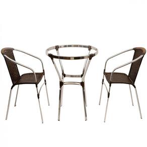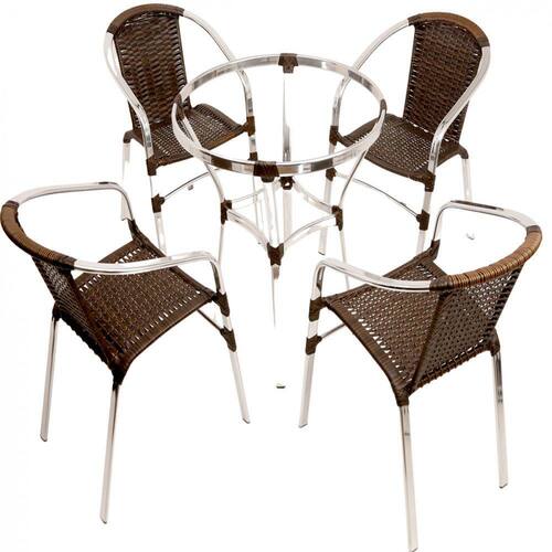 Jogo 4 Cadeiras e Mesa Floripa Alumínio Para Piscina, Área, Jardim Trama - Marrom Escuro