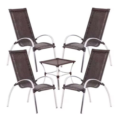 Jogo 4 Cadeiras E Mesa Garden Alumínio Para área Trama Tabaco