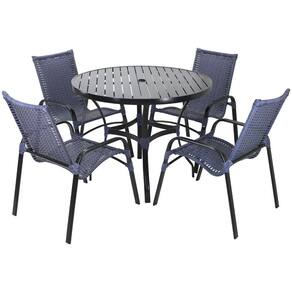 Jogo 4 Cadeiras Emily e Mesa com Tampo Ripado em Alumínio para Piscina, Área e Jardim Trama - Azul Turquesa