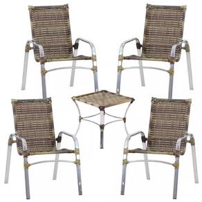 Jogo 4 Cadeiras Emily E Mesa Garden Em Alumínio Trama Capuccino