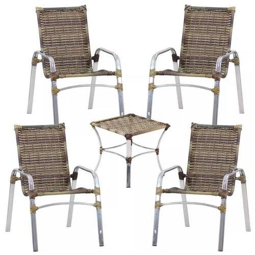 Jogo 4 Cadeiras Emily e Mesa Garden em Aluminio Para Area, Piscina, Jardim Trama