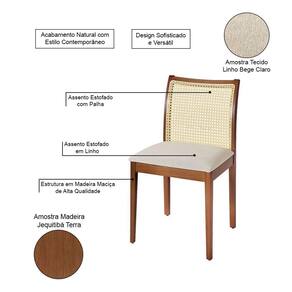 AS IMAGENS SÃO MERAMENTE ILUSTRATIVAS E PODEM SOFRER VARIAÇÕES DE COR E PEQUENOS DETALHES DE ACORDO COM O SEU MONITOR, ILUMINAÇÃO DO AMBIENTE E ATÉ MESMO A SUA PERCEPÇÃO VISUAL.Jogo 4 Cadeiras para Jantar Juliana Jequitibà Terra Estrutura em Madeira MaciÃa Linho Bege
