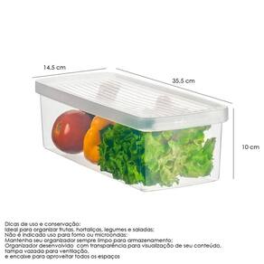 Com todas as qualidades que você merece e preço que cabe no seu bolso, foi desenvolvido para armazenar frutas, verduras e legumes no refrigerador. Possui tampa vazada que permite a circulação de ar, conservando o frescor dos alimentos por muito mais tempo. Além disso, permite empilhamento para otimizar o espaço no refrigerador. Transparente, possibilita uma rápida identificação do conteúdo. E pode ser utilizada não só para refrigerador, pode ser utilizada para qualquer organização que seja possível utilizar o produto.