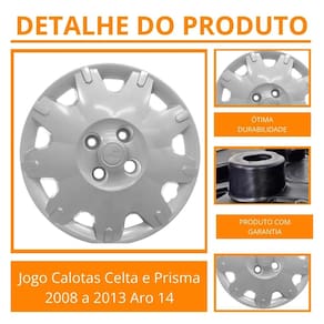 Jogo 4 Calotas Celta E Prisma 2008 A 2013 Aro 14 - GM Prata