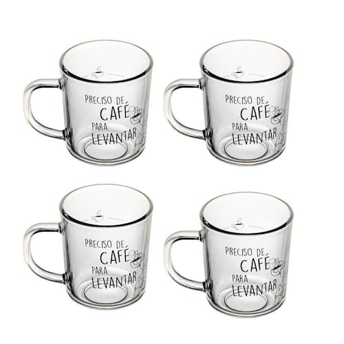 Jogo 4 Caneca de Vidro Preciso de Café para Levantar Lyor 200ml