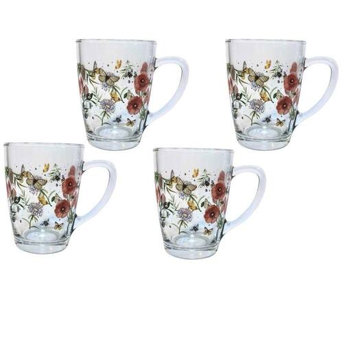 Jogo 4 Canecas Vidro Redonda Para Chá Cappuccino 300ML