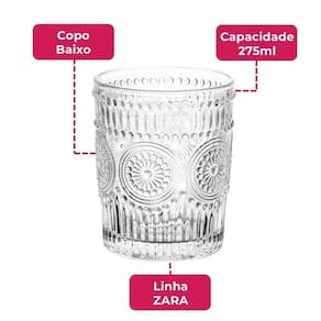 O Copo Zara de Vidro da Em Casa Tem é mais do que um simples copo, é um acessório elegante projetado para adicionar charme e sofisticação à sua mesa. Com uma capacidade de 275ml, este copo é perfeito para servir suas bebidas favoritas com estilo.