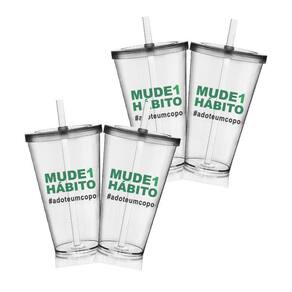 Jogo 4 Copos Com Tampa E Canudo Personalizados Eco Hábito Kit eco com copos eco personalizados para ajudar o meio ambiente. Adote o seu copo e evite descartáveis. Juntos somos mais fortes. Especificações: Material: Poliestireno Acrílico PS , Altura: 14,5 cm Diâmetro: 9,5 cm, Capacidade: 550 ml, Cor: Transparente, Quantidade: 4 peças