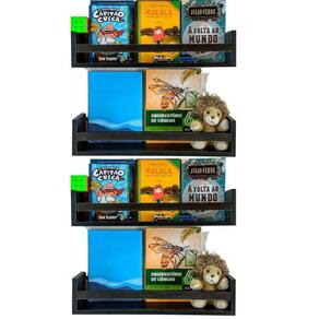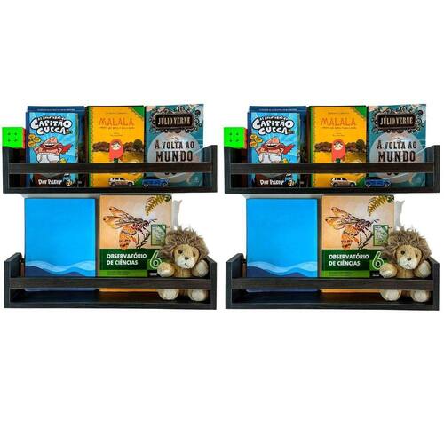 Jogo 4 Estantes Para Livros e Brinquedos Criança Nicho Pelúcia Bonecos Mdf Preto 55cm Prateleiras enviadas montadas para você, de acabamento perfeito. Qualidade comprovada por nossos clientes Fabricação da Arte Cedro decor Pronta para enviar O que vem: Kit 4 Prateleiras porta livros, brinquedos e multiuso. Exclusivo preto madeirado, mais beleza e exclusividade Kit instalação do produto. Decora e organiza todos os ambientes. Pode ser instalado em várias posições de acordo com sua necessidade. Produto perfeito para qualquer área. No quarto pode ser Utilizado como porta livros, pelúcias, brinquedos, enfeites. No banheiro como porta xampu, cosméticos, papel higiênico. Pode ser também fixado invertido para funcionar como cabideiro ou porta toalha. Na cozinha é utilizado como porta temperos, condimentos, potes, etc. Organizador de Sala de leitura, expositor de cosméticos em salão de beleza. Estante muito versátil, com uma infinidade de possibilidades para toda sua casa. Fácil instalação, bastando fixar na parede. Suporta até 8 kilos. Material 100% MDF 15 mm. Acabamento real do mdf, superior á pintura em qualidade e durabilidade Produzido com fita de borda em PVC, incomparável ás de papel utilizadas no mercado MEDIDAS 55 CM comprimento. 12 CM altura. 10 CM largura. Marca: Não Informado