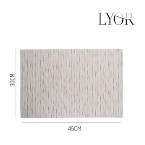 O Lugar Americano Retangular da Lyor, na cor bege e com medidas de 45x30cm, é produzido em PVC com estampa de carpet. Ideal para proteger a mesa de manchas e arranhões durante as refeições, oferece praticidade na limpeza e contribui para a organização da mesa posta, seja no dia a dia ou em ocasiões especiais. Sua superfície lisa facilita a higienização com um pano úmido.