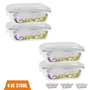 4 Potes de 370ml de Vidro Hermético com 4 Travas