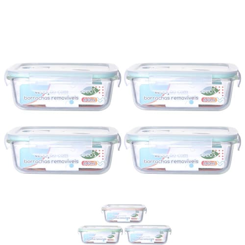 4 Pote de Vidro com tampa Hermética Retangular 640ml