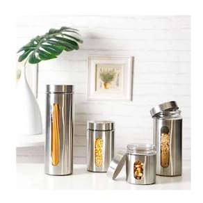 Além disso, deixará os produtos livres da ação do ar ou da umidade. Um lindo jogo para deixar a sua cozinha mais bonita e organizada.Organize, guarde, conserve!