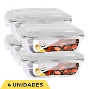 Jogo 4 Potes Hermeticos Vidro Retangular Tampa Travas 640ml - Jogo de potes herméticos de vidro