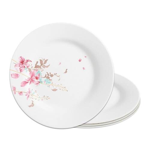 Jogo 4 Prato de Sobremesa de Vidro Branco Flowers Bord Em Casa Tem 20cm