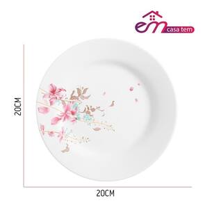 Prato de Sobremesa de Vidro Branco Flowers Bord Em Casa Tem 20cm
