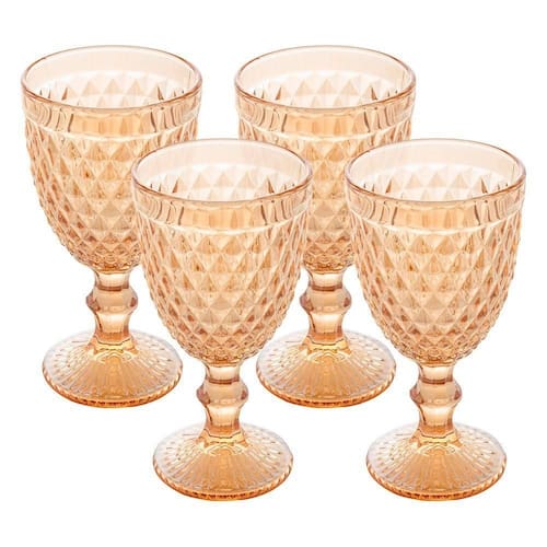 Jogo 4 Taças de Vidro Bico Abacaxi Cor Âmbar Metalizado para Água Vinho Lyor 325ml