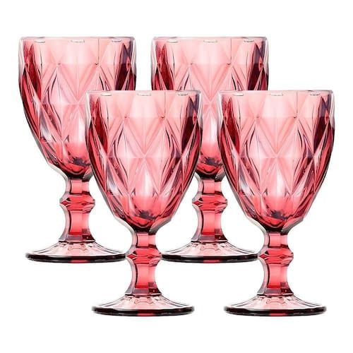 Jogo 4 Taças de Vidro Diamond Diamante Rosa Lilás 300ml Água Class Home