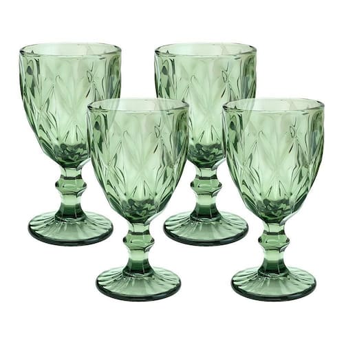 Jogo 4 Taças de Vidro Diamond Diamante Verde 300ml Água Class Home