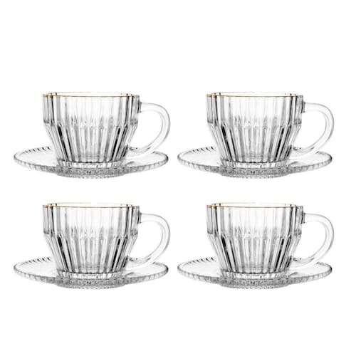 Jogo 4 Xícara de Chá Cristal Transparente com Fio de Ouro Império 220ml Wolff