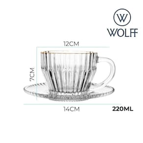 A Xícara de Chá de Cristal com Fio de Ouro Império, da Wolff, é projetada para apreciadores de chá que buscam uma experiência refinada. A transparência do cristal permite observar a infusão da bebida, enquanto o detalhe em fio de ouro na borda confere um toque de requinte.