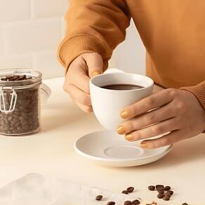 Material: Cerâmica de alta qualidade Capacidade da xícara: 210 ml Medidas da xícara: 11,3 cm largura x 8,8 cm profundidade x 6,5 cm altura Medidas do pires: 13,2 cm largura x 13,2 cm profundidade x 2 cm altura