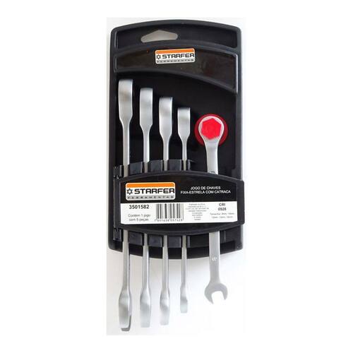 Jogo de chave fixa-estrela com catraca com 5 peças.
