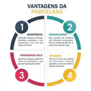 Queimadas a uma temperatura próxima a C, nossas porcelanas não absorvem água em função de sua porosidade nula. Isso garante a higienização perfeita de nossas peças, além de torná-las altamente resistentes a choque mecânicos.