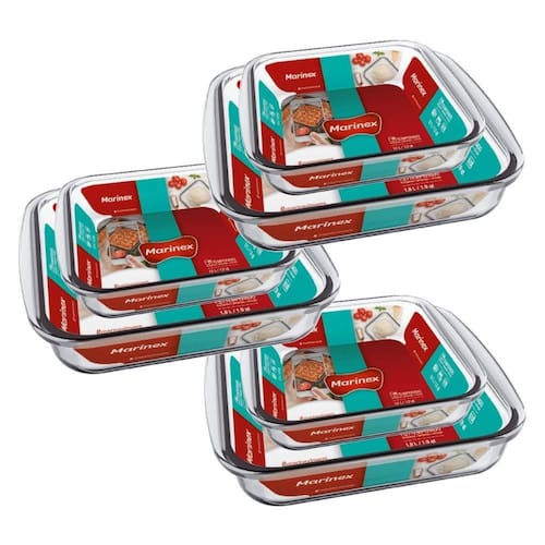 6 Assadeiras 3 de cada Tamanho 1,1 Litros e 1,8 Litros Quadrada Marinex Nadir Figueiredo