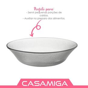 - Altura: 4cm - Diâmetro: 15cm - Capacidade: 355ml - Material: Vidro - Não pode ir ao Micro-ondas. - Marca: Rigolleau - Cor: Transparente - Conteúdo: 6 Bowl