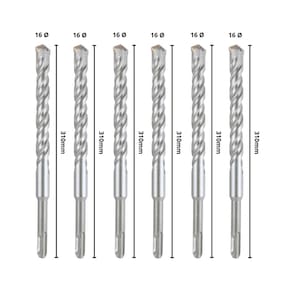 - 06 Brocas SDS Plus 16x310 mm de Aço Carbono e Tungstênio.
