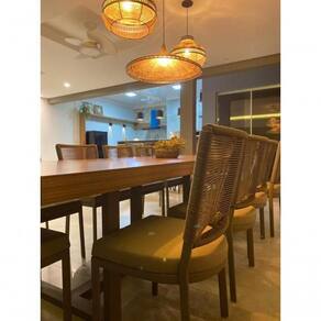 O encosto e assento é feito em corda sintética trançadas artesanalmente.