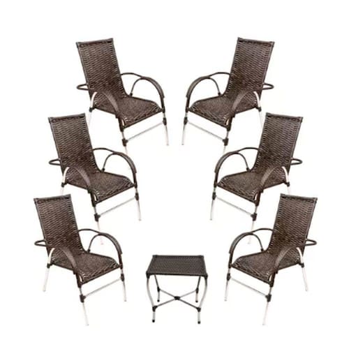 Jogo 6 Cadeiras E Mesa Vênus Para Area Externa Trama Preto