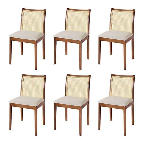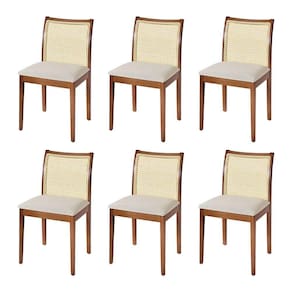 AS IMAGENS SÃO MERAMENTE ILUSTRATIVAS E PODEM SOFRER VARIAÇÕES DE COR E PEQUENOS DETALHES DE ACORDO COM O SEU MONITOR, ILUMINAÇÃO DO AMBIENTE E ATÉ MESMO A SUA PERCEPÇÃO VISUAL.Jogo 6 Cadeiras para Jantar Juliana Jequitibà Terra Estrutura em Madeira MaciÃa Linho Bege