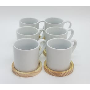Jogo 6 canecas 210ml c/ pires de Pinus - Porcelana branca