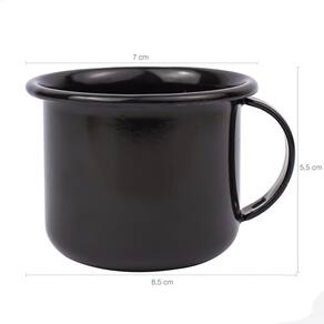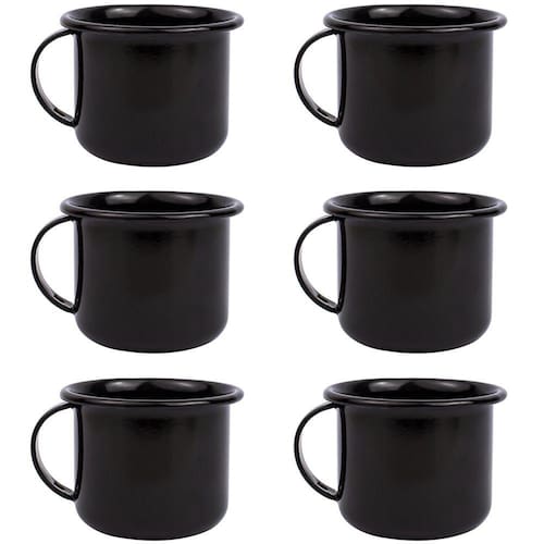 Este jogo de seis xícaras de ágata 90ml da Esmaltados Silva é excelente para seu dia a dia, na hora do chá, cafezinho ou leite. Desenvolvidas em aço carbono e revestidas interna e externamente com dupla camada de esmalte vítreo de alta durabilidade, as canecas esmaltadas possuem design rústico regional na cor preto e lembram as louças usadas antigamente, especialmente nas casas de avós. Ean: 7797087682559