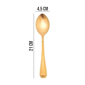 A Colher Victoria Gold da Fratelli, na cor dourada, oferece um toque refinado à mesa. Fabricada em aço inoxidável, proporciona durabilidade e resistência para uso diário ou ocasiões especiais. Seu design moderno com linhas retas combina funcionalidade e estética, complementando a composição da mesa com elegância. O acabamento dourado confere um visual diferenciado e contribui para a proteção contra corrosão, preservando o brilho da peça por mais tempo.