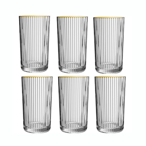 - Dimensões da Peça: 8 x 8 x 13cm - Material: Vidro - Cor: Transparente e borda dourada - Contem: 6 copos - Marca: Hauskraft