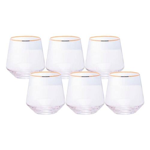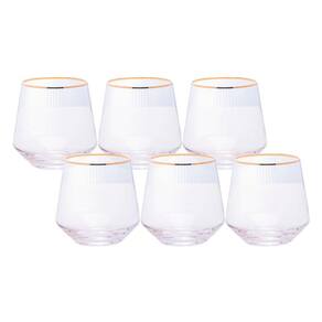 Jogo 6 Copos de Whisky Baixo Drinks Vidro Lines Fio de Ouro Borda Dourada 330ml Wolff