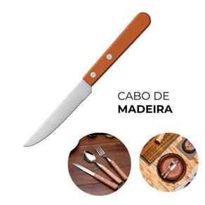 Jogo 6 Facas Cabo de Madeira Churrasco Astana 21cm Em Casa Tem