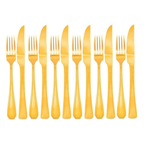 Jogo 6 Garfos e 6 Facas Dourado de Mesa Jantar Victoria Gold Inox Fratelli