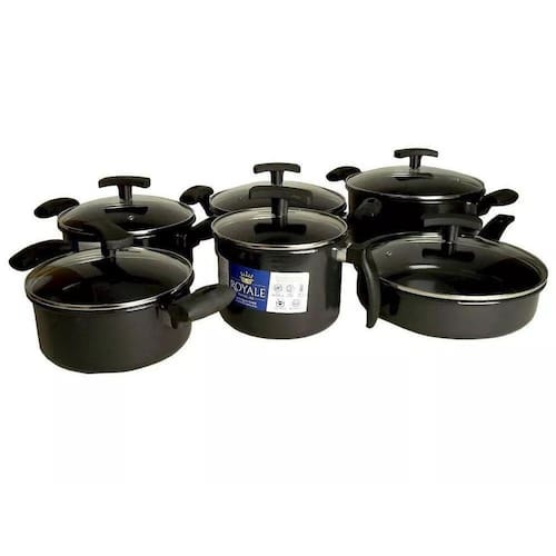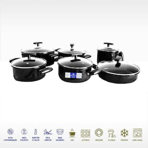 Conjunto de Panelas 6 Peças Aço Fundido com Cerâmica e Tampa de Vidro inquebrável Preta - Royale